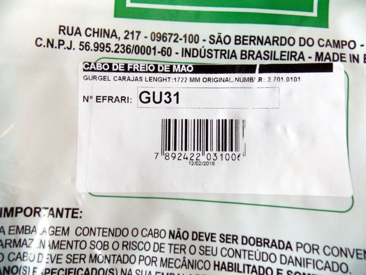 CÓDIGOS EFRARI = GU-31, GU-14 e GU-19