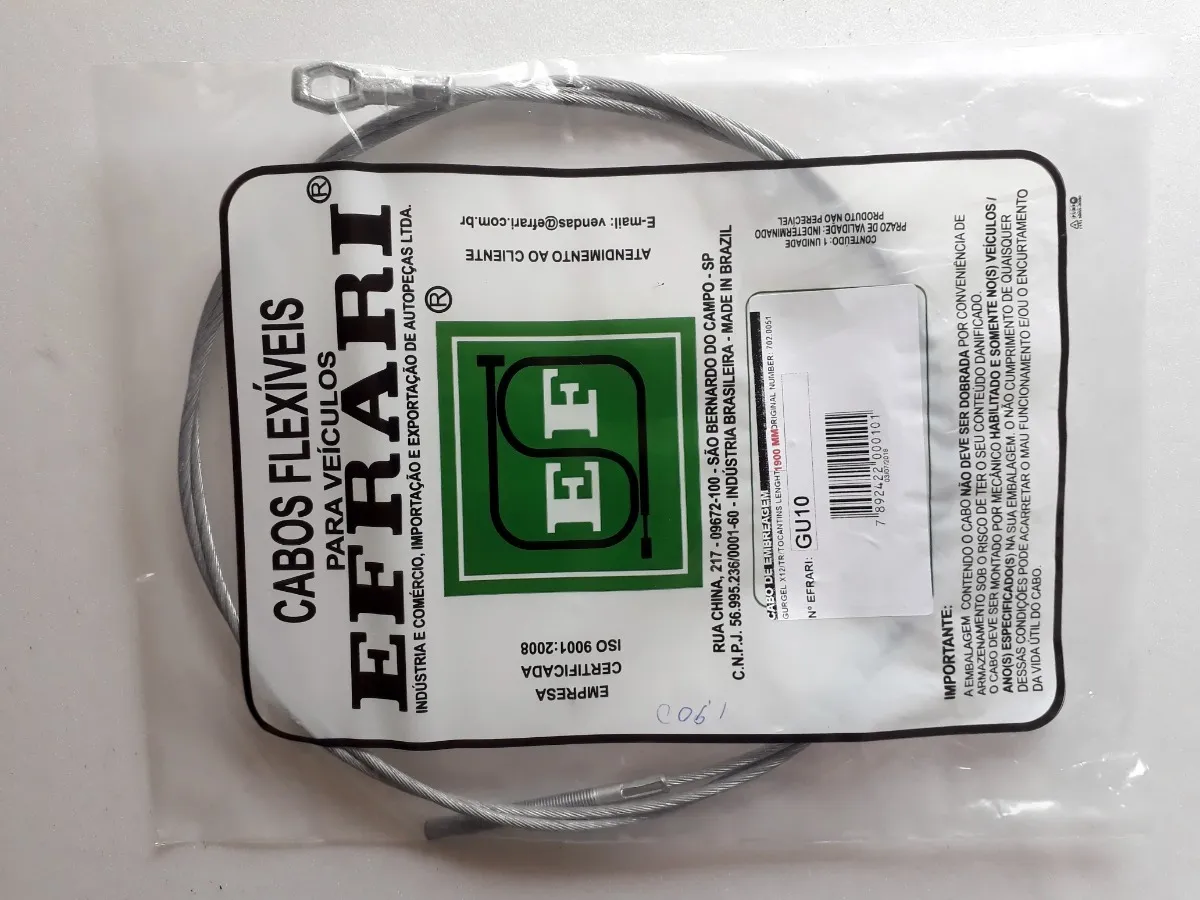 Observação: Na eventual ausência da marca “EFRARI”, poderá ser enviado cabo de qualidade equivalente, produzido pela MUNDIFLEX – Cabos de Comando. Qualquer dúvida, entre em contato para informações.